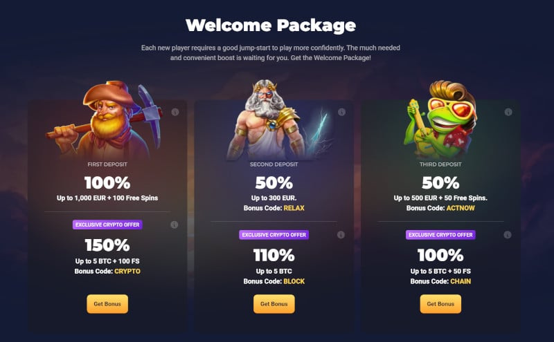 初回入金から3回目の入金時に、50%最大500ドルのボーナスを獲得できます。くわえて、「Book of Dead」の50回分のフリースピンが付与されるんです!