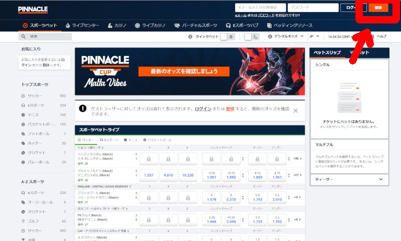 ピナクルカジノの登録方法
