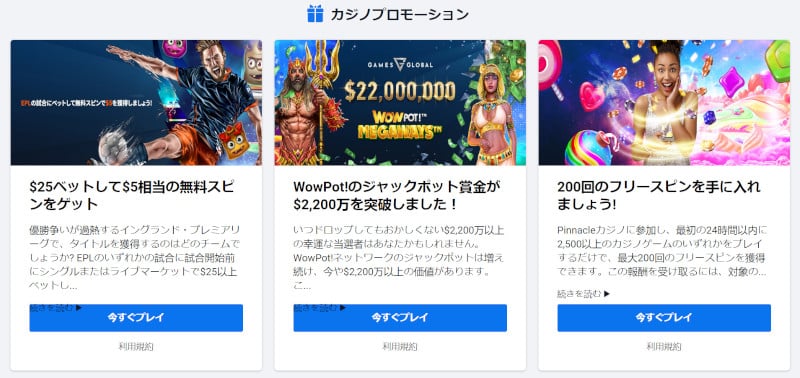 ピナクルカジノのプロモーション