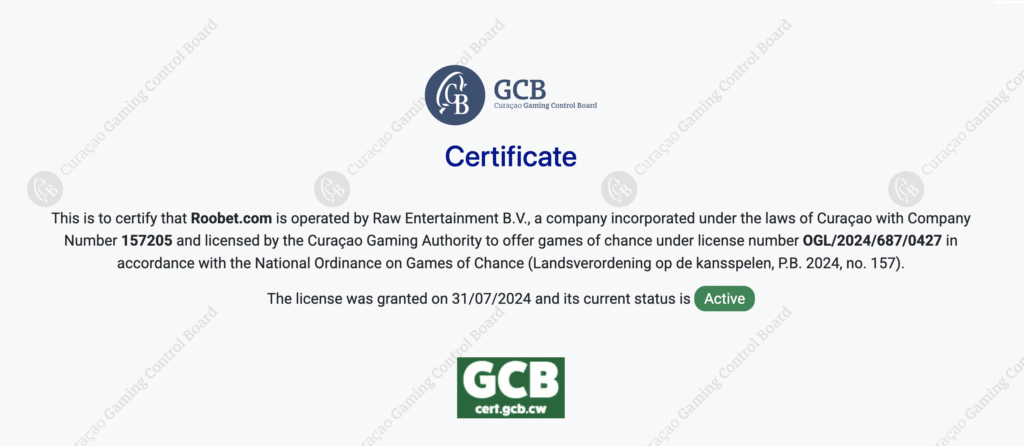 ルーベットはオランダ領キュラソーに登記されたRaw Entertainment B.V社が運営しており、キュラソーのAntillphoneライセンスを取得していますので違法性は無く、安心して遊ぶことができます。
