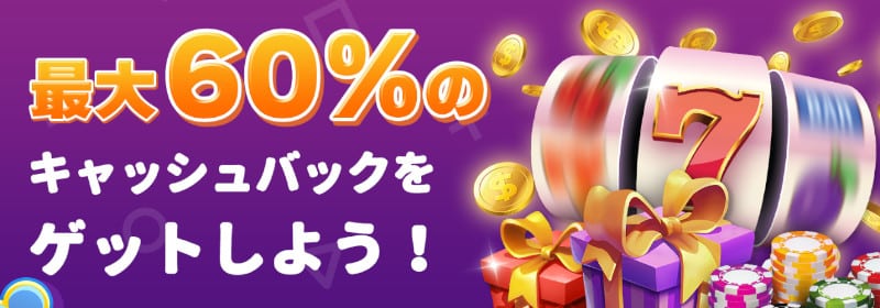 • 初回入金で最大60%のキャッシュバック