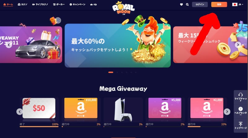 ロイヤルムーンカジノのウェルカムキャッシュバック