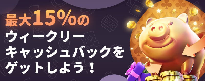 ロイヤルムーンカジノの初回入金では、他のカジノが提供するウェルカムボーナスはありません。その代わりに、最大60%のキャッシュバックのウェルカムサービスを用意しています。好きなスロットゲームやライブカジノゲームなどでプレイすると、損失額の最大60%が進呈されます。「せっかく入金したけど、資金が全てなくなってしまった」なんて場合や、まだ慣れていない初心者にとってはとても嬉しいサービスです!